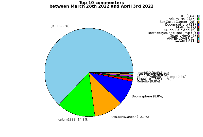 | Top 10 commenters between March 28th 2022 and April 3rd 2022 | ||