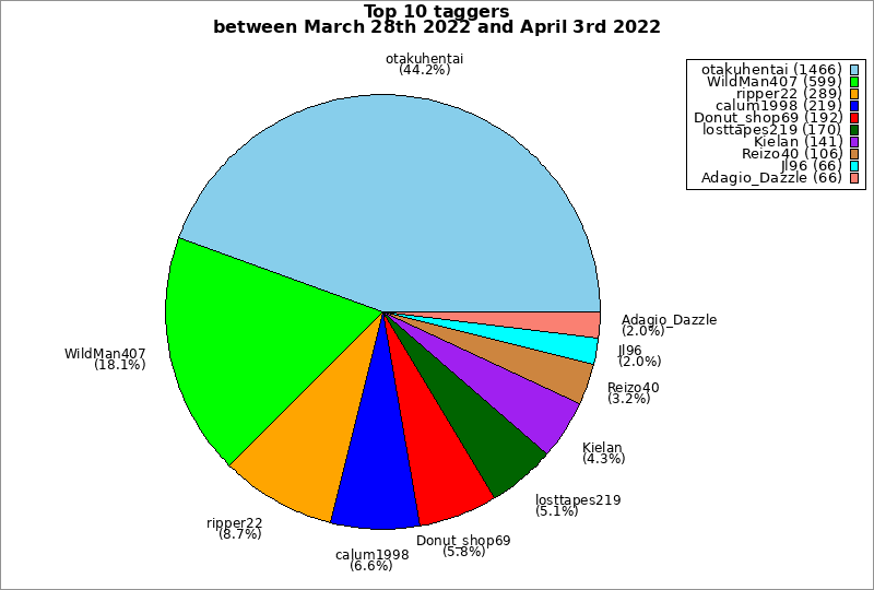 | Top 10 taggers between March 28th 2022 and April 3rd 2022 | ||