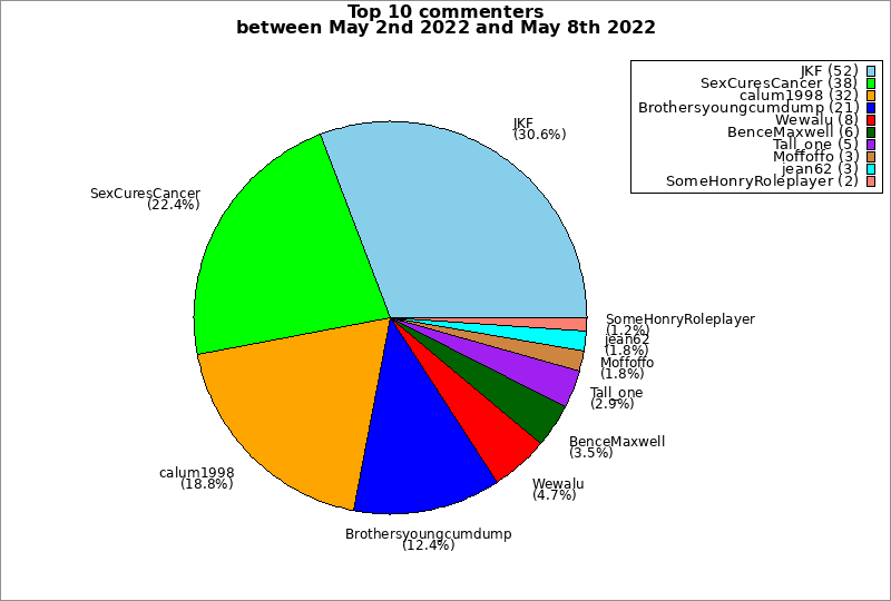 | Top 10 commenters between May 2nd 2022 and May 8th 2022 | ||