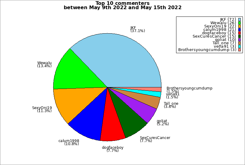 | Top 10 commenters between May 9th 2022 and May 15th 2022 | ||
