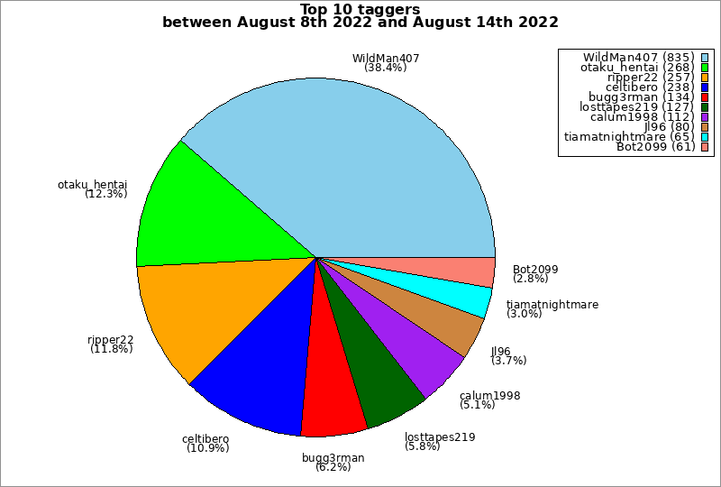 | Top 10 taggers between August 8th 2022 and August 14th 2022 | ||