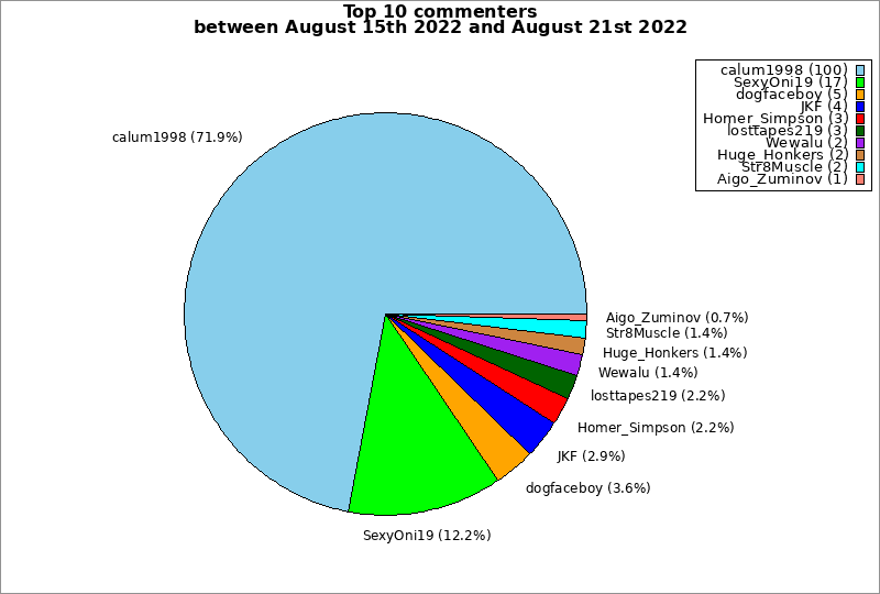 | Top 10 commenters between August 15th 2022 and August 21st 2022 | ||