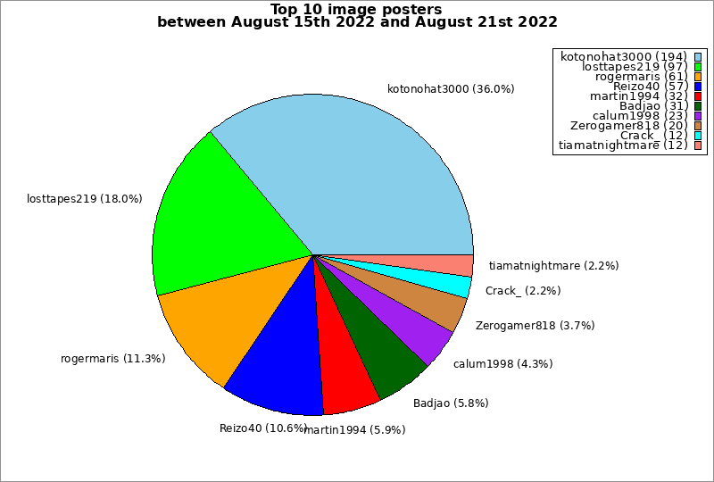 | Top 10 image posters between August 15th 2022 and August 21st 2022 | ||