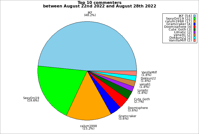 | Top 10 commenters between August 22nd 2022 and August 28th 2022 | ||