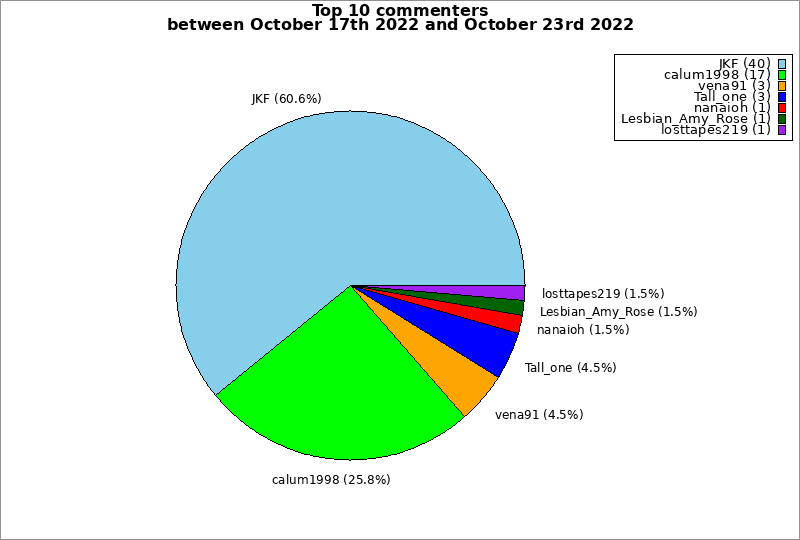 | Top 10 commenters between October 17th 2022 and October 23rd 2022 | ||