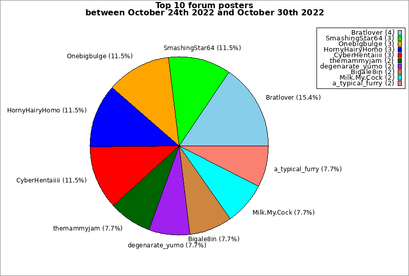 | Top 10 forum posters between October 24th 2022 and October 30th 2022 | ||