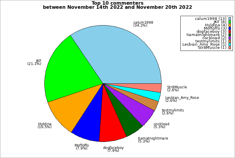 | Top 10 commenters between November 14th 2022 and November 20th 2022 | ||