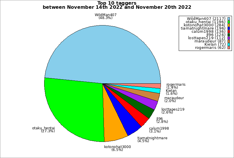 | Top 10 taggers between November 14th 2022 and November 20th 2022 | ||