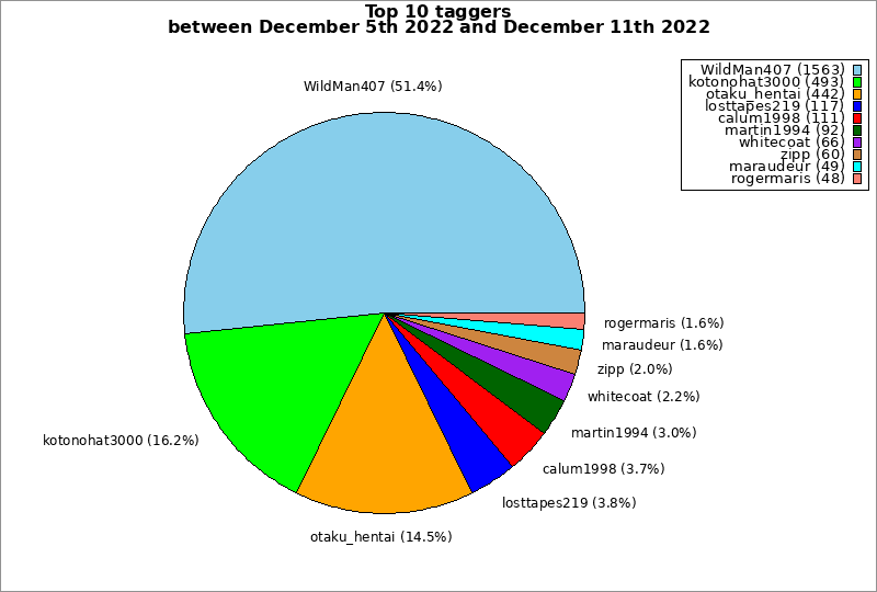 | Top 10 taggers between December 5th 2022 and December 11th 2022 | ||