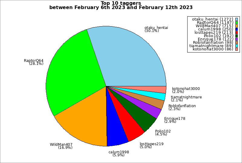 | Top 10 taggers between February 6th 2023 and February 12th 2023 | ||
