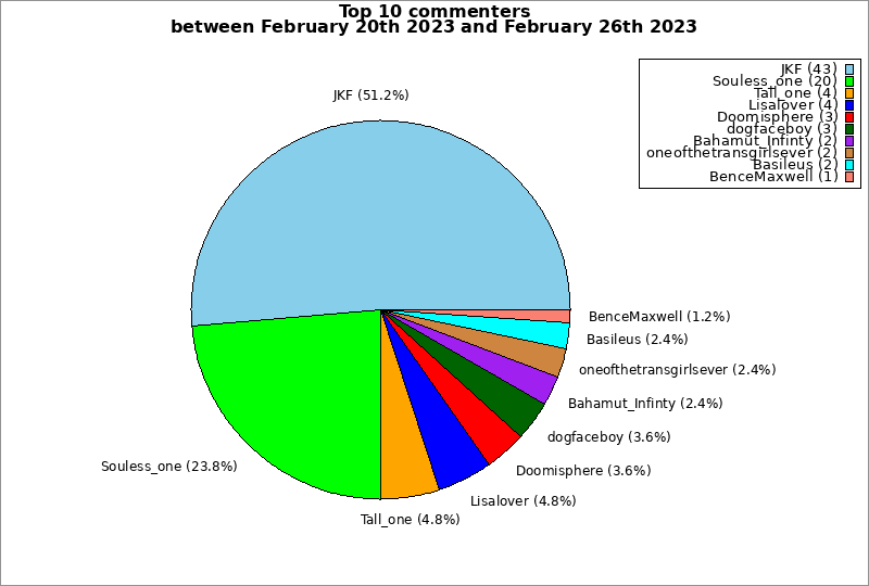 | Top 10 commenters between February 20th 2023 and February 26th 2023 | ||