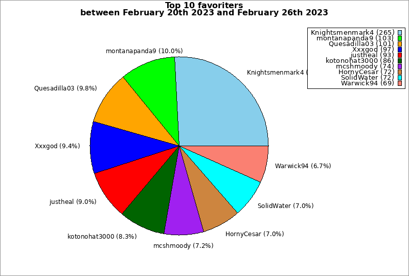 | Top 10 favoriters between February 20th 2023 and February 26th 2023 | ||