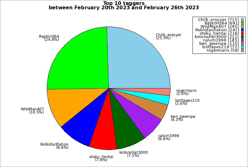 | Top 10 taggers between February 20th 2023 and February 26th 2023 | ||