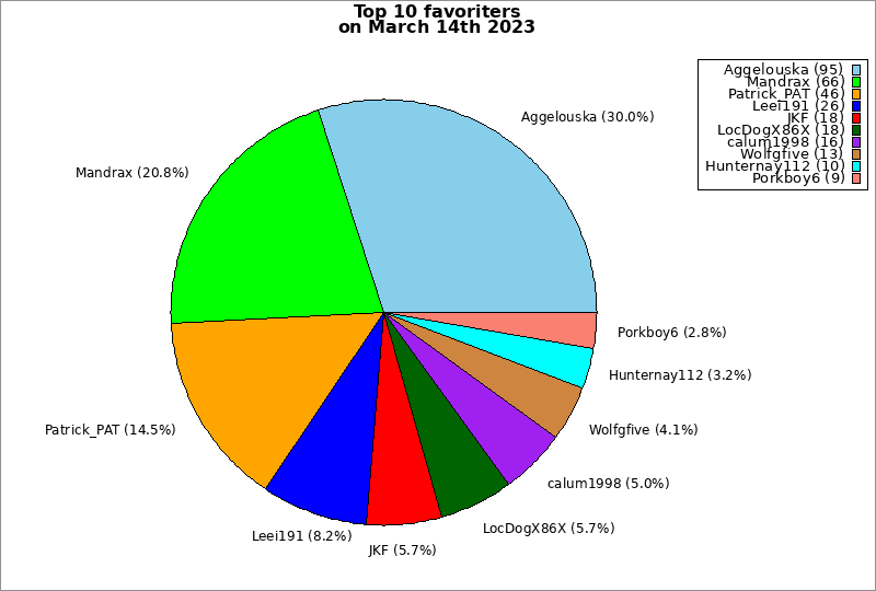 | Top 10 favoriters on March 14th 2023 | ||