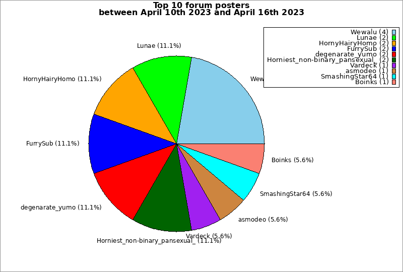 | Top 10 forum posters between April 10th 2023 and April 16th 2023 | ||
