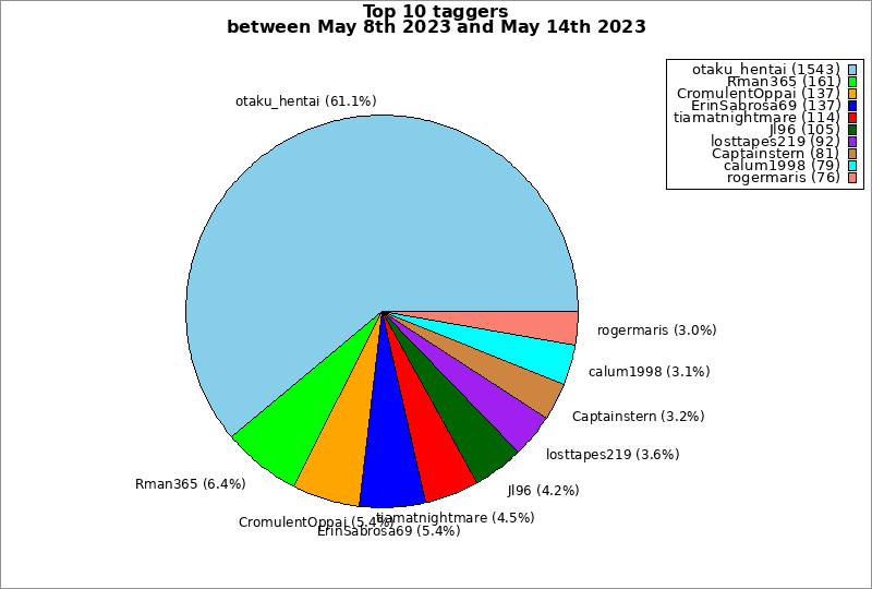 | Top 10 taggers between May 8th 2023 and May 14th 2023 | ||