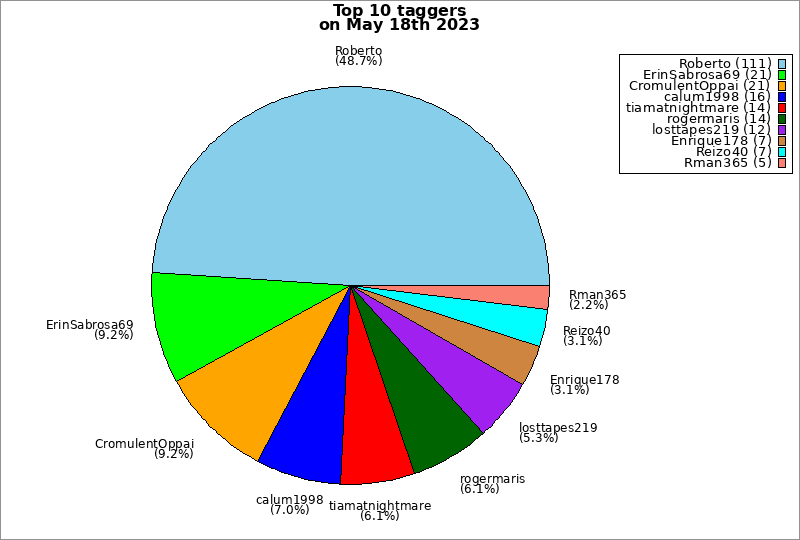 | Top 10 taggers on May 18th 2023 | ||