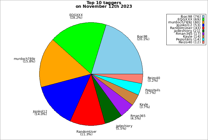 | Top 10 taggers on November 12th 2023 | ||