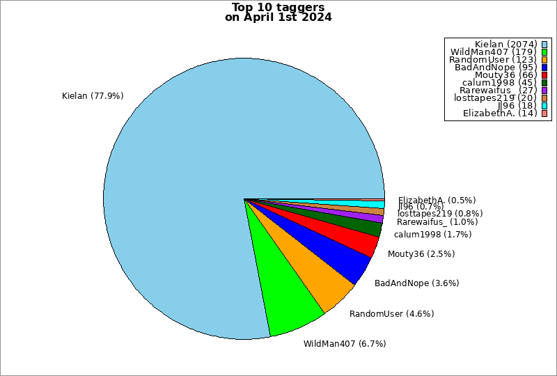 | Top 10 taggers on April 1st 2024 | ||