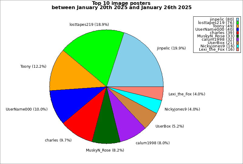 | Top 10 image posters between January 20th 2025 and January 26th 2025 | ||