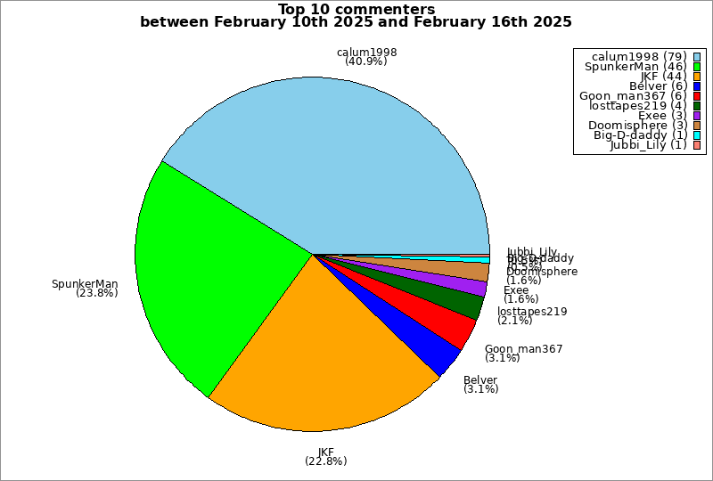 | Top 10 commenters between February 10th 2025 and February 16th 2025 | ||