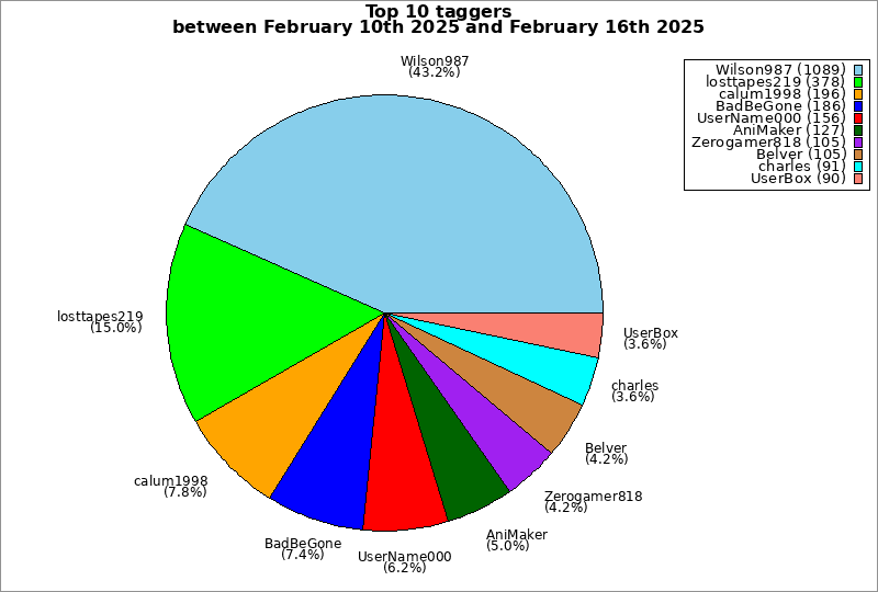 | Top 10 taggers between February 10th 2025 and February 16th 2025 | ||