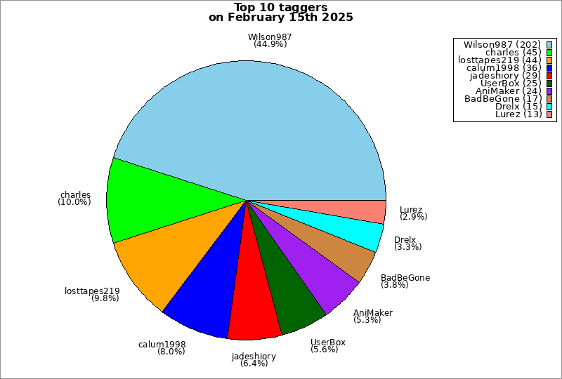 | Top 10 taggers on February 15th 2025 | ||