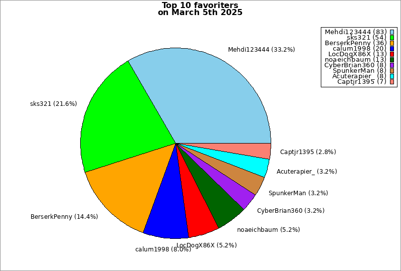 | Top 10 favoriters on March 5th 2025 | ||
