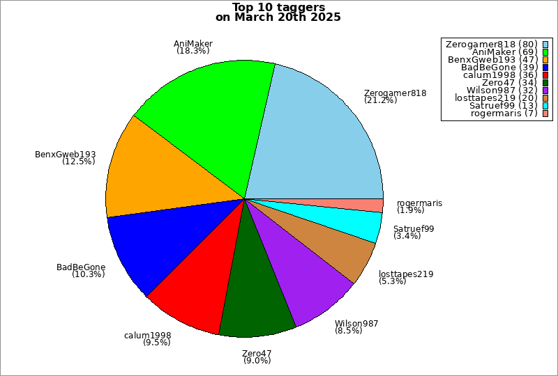 | Top 10 taggers on March 20th 2025 | ||