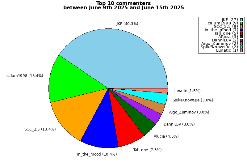 | Top 10 commenters between June 9th 2025 and June 15th 2025 | ||