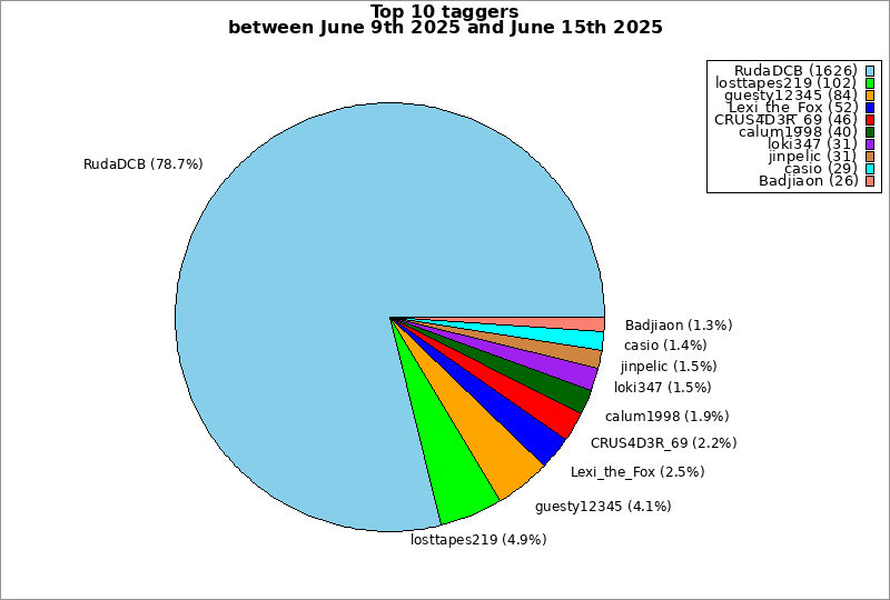 | Top 10 taggers between June 9th 2025 and June 15th 2025 | ||