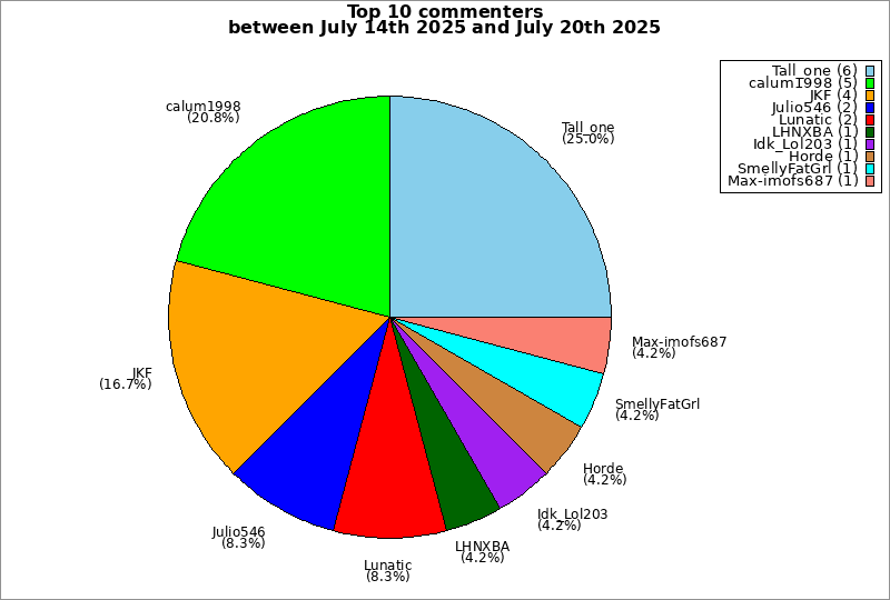 | Top 10 commenters between July 14th 2025 and July 20th 2025 | ||