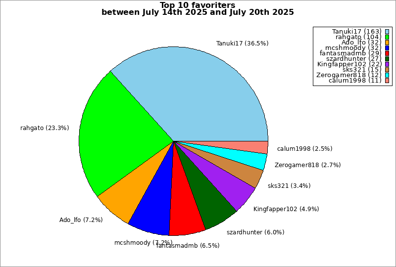 | Top 10 favoriters between July 14th 2025 and July 20th 2025 | ||