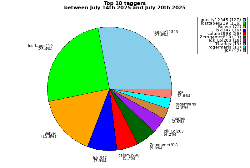 | Top 10 taggers between July 14th 2025 and July 20th 2025 | ||