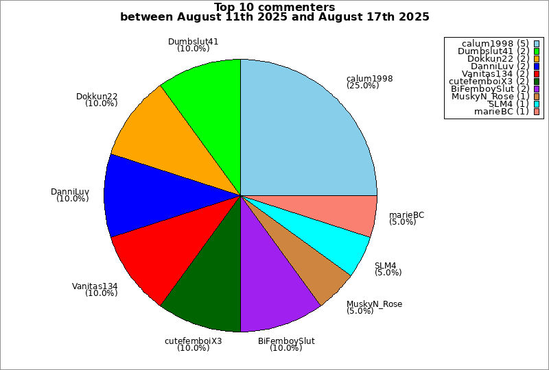 | Top 10 commenters between August 11th 2025 and August 17th 2025 | ||