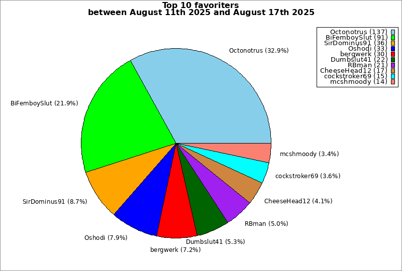 | Top 10 favoriters between August 11th 2025 and August 17th 2025 | ||