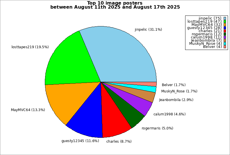 | Top 10 image posters between August 11th 2025 and August 17th 2025 | ||