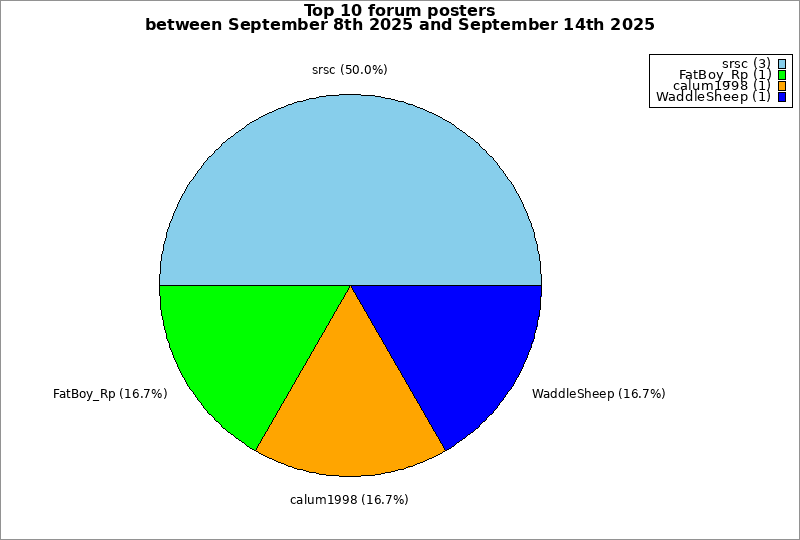 | Top 10 forum posters between September 8th 2025 and September 14th 2025 | ||