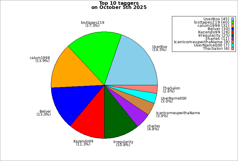 | Top 10 taggers on October 5th 2025 | ||