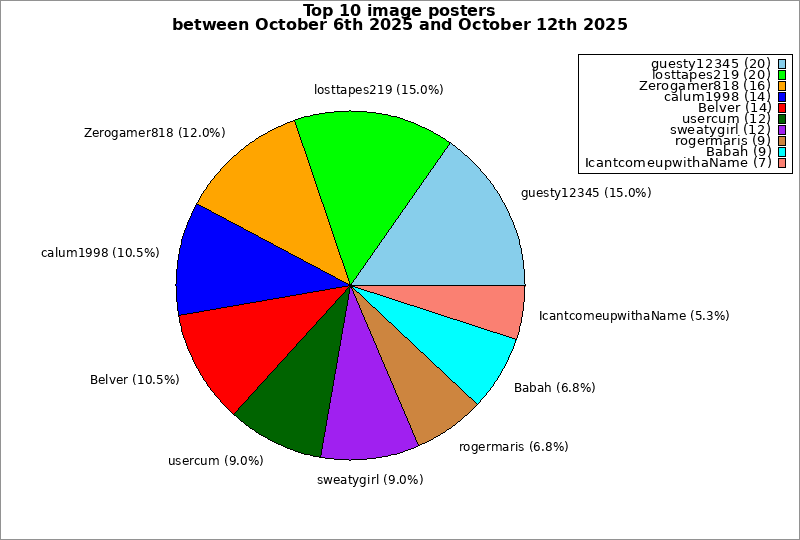 | Top 10 image posters between October 6th 2025 and October 12th 2025 | ||