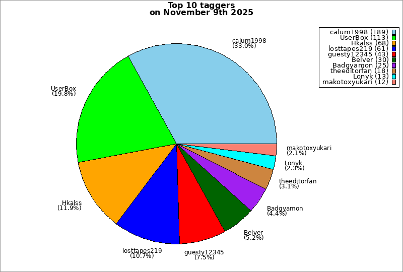 | Top 10 taggers on November 9th 2025 | ||