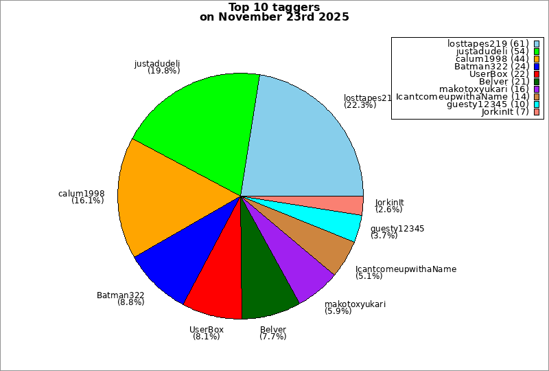 | Top 10 taggers on November 23rd 2025 | ||