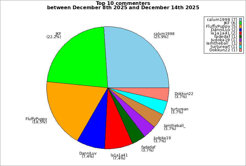 | Top 10 commenters between December 8th 2025 and December 14th 2025 | ||