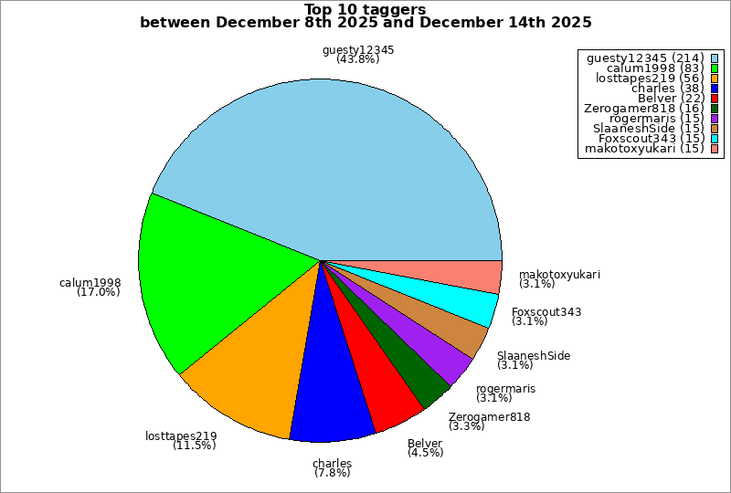 | Top 10 taggers between December 8th 2025 and December 14th 2025 | ||