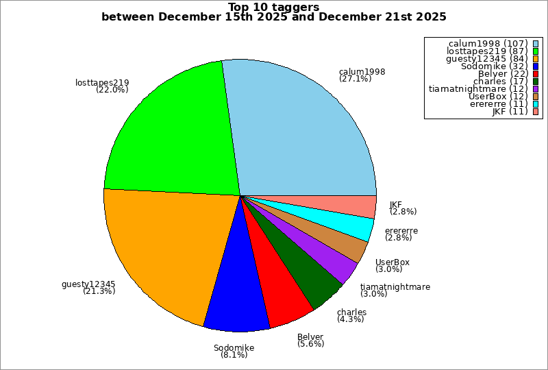 | Top 10 taggers between December 15th 2025 and December 21st 2025 | ||