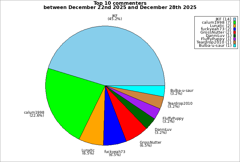 | Top 10 commenters between December 22nd 2025 and December 28th 2025 | ||