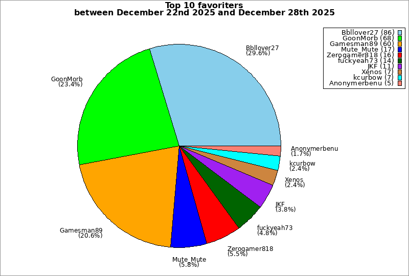 | Top 10 favoriters between December 22nd 2025 and December 28th 2025 | ||
