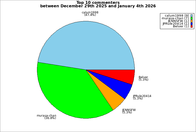 | Top 10 commenters between December 29th 2025 and January 4th 2026 | ||