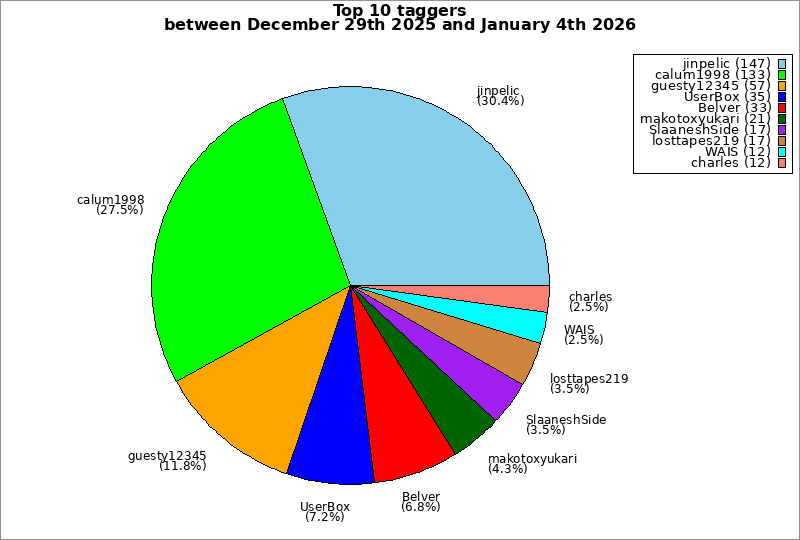 | Top 10 taggers between December 29th 2025 and January 4th 2026 | ||