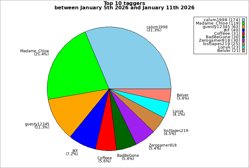 | Top 10 taggers between January 5th 2026 and January 11th 2026 | ||